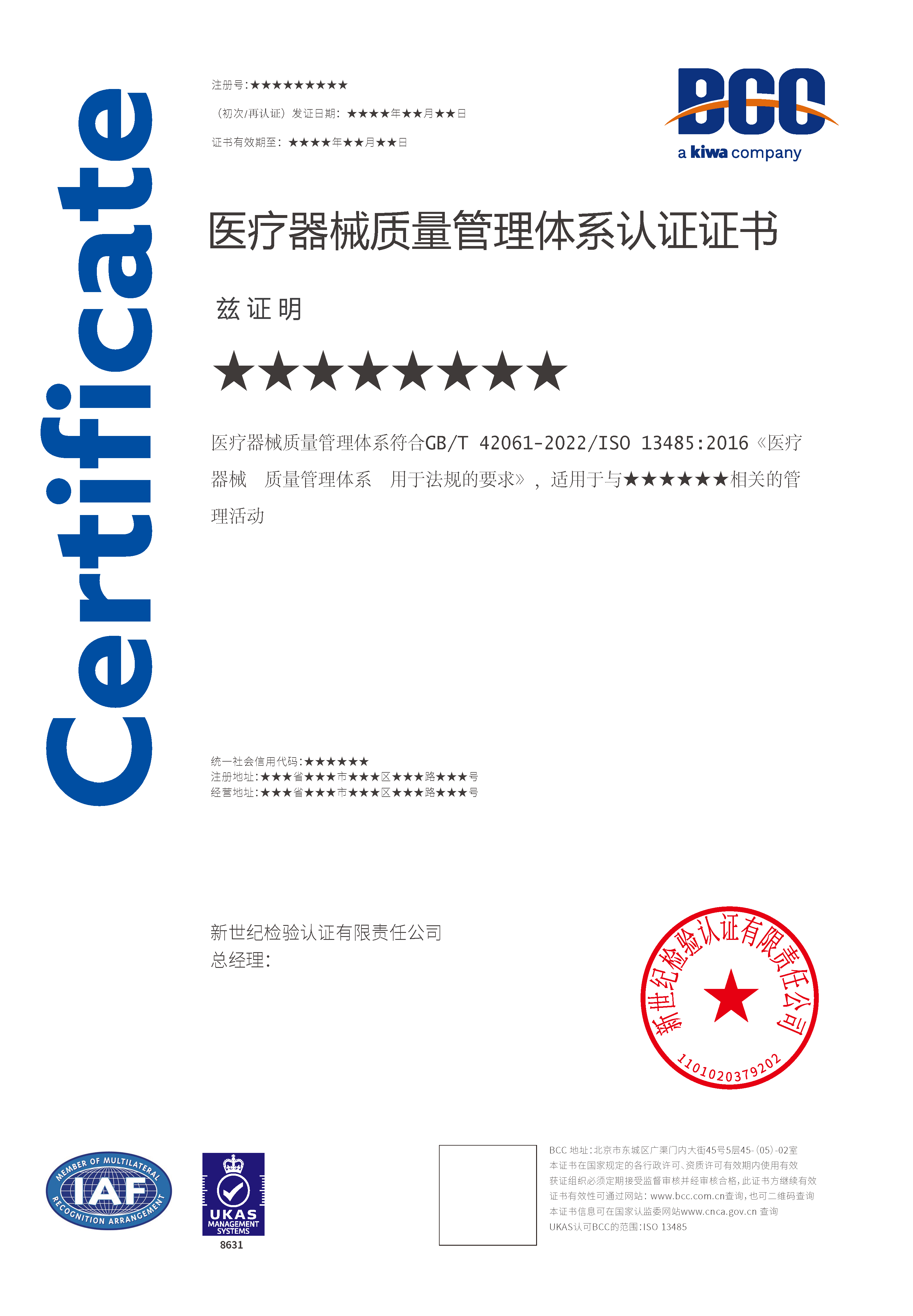 醫(yī)療器械質(zhì)量管理體系證書 醫(yī)療器械質(zhì)量管理體系證書(UKAS)