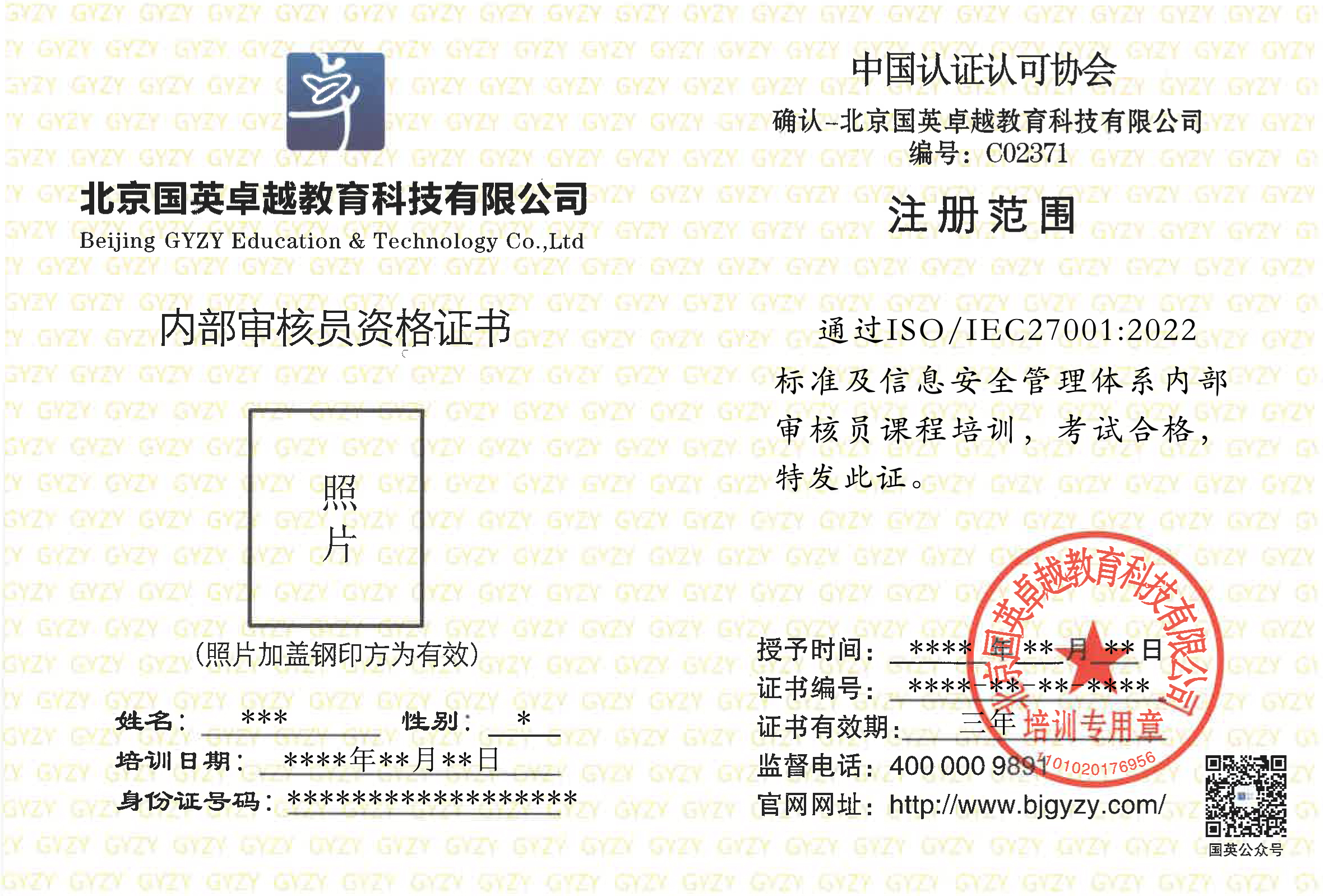 內(nèi)審員證書 外審員證書
