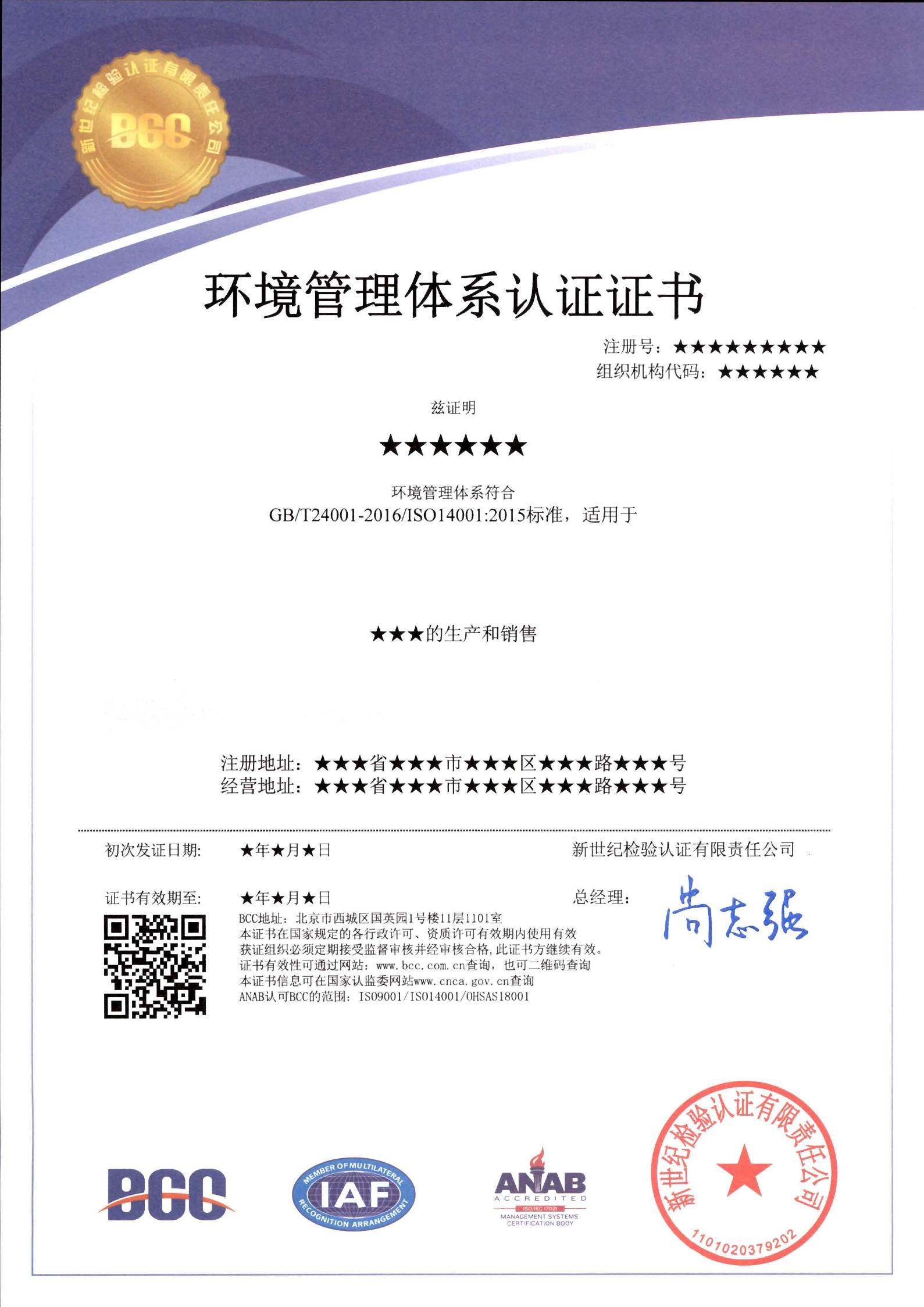 環(huán)境管理證書(ANAB+IAF) 環(huán)境管理證書(CNAS+IAF)