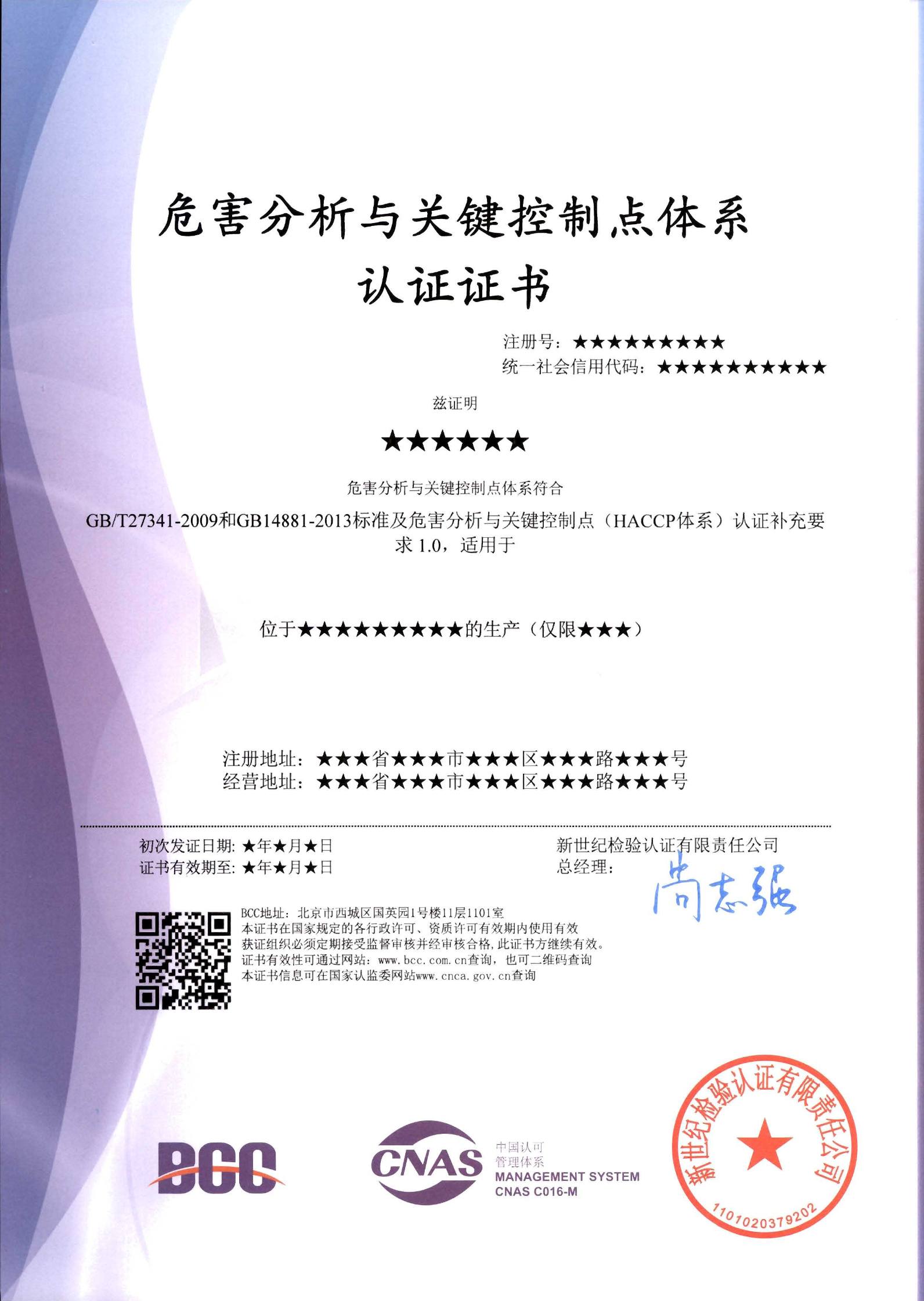 廣州專業(yè)haccp認(rèn)證證書